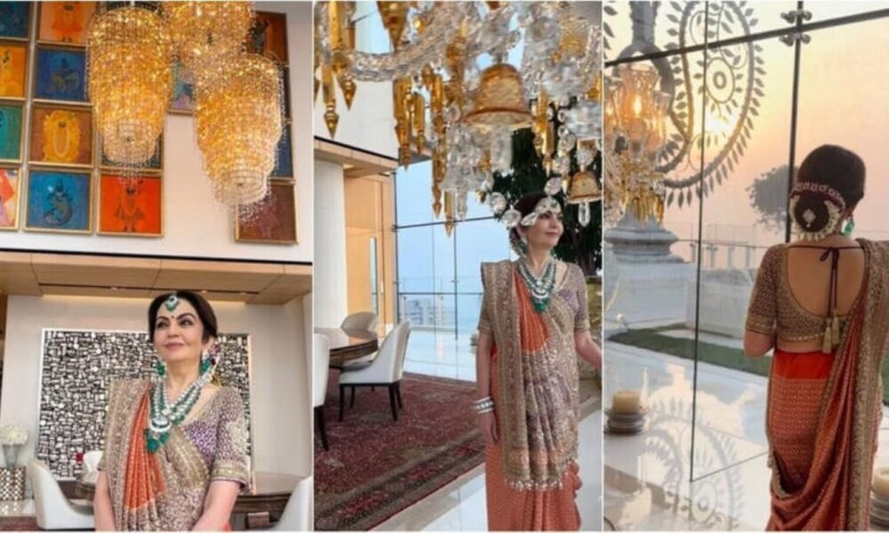 वीडियो में नीता अंबानी को पन्ना और हीरे के गहनों के साथ पारंपरिक नारंगी और सुनहरी साड़ी में इन हरे-भरे हिस्सों से गुजरते हुए देखा गया। हाई-टेक कांच के इंटीरियर से लेकर छतों की शांत हरियाली तक का यह बदलाव इमारत के दर्शन को दर्शाता है: दक्षिण मुंबई की शहरी अराजकता के बीच एक शांतिपूर्ण अभयारण्य।